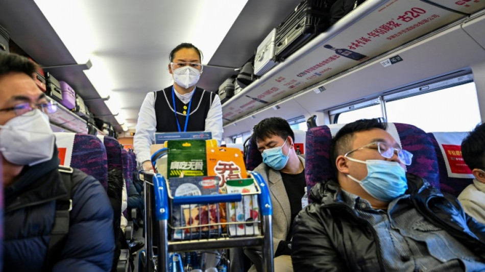 En un tren repleto Wang Chunfeng se siente dichoso. Es uno de los millones de chinos que buscan recuperar el tiempo perdido y viajan para festejar este Año Nuevo Lunar, tras años en que las restricciones de la pandemia los obligó a estar separados de su familia.